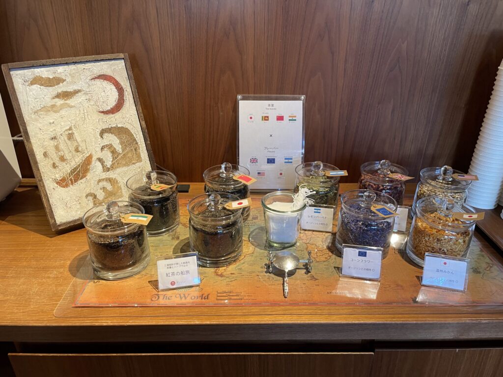 界アンジンのロビーには、紅茶を自分で作って飲めるコーナーがありました。