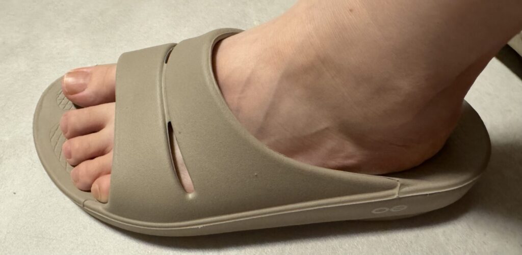 テレワークをしていると歩くことも少なくなり扁平足になりがちですが、Oofosを履くと土踏まずができていることに感動!