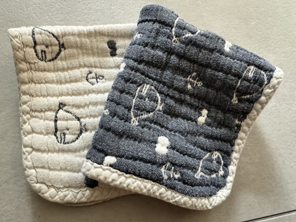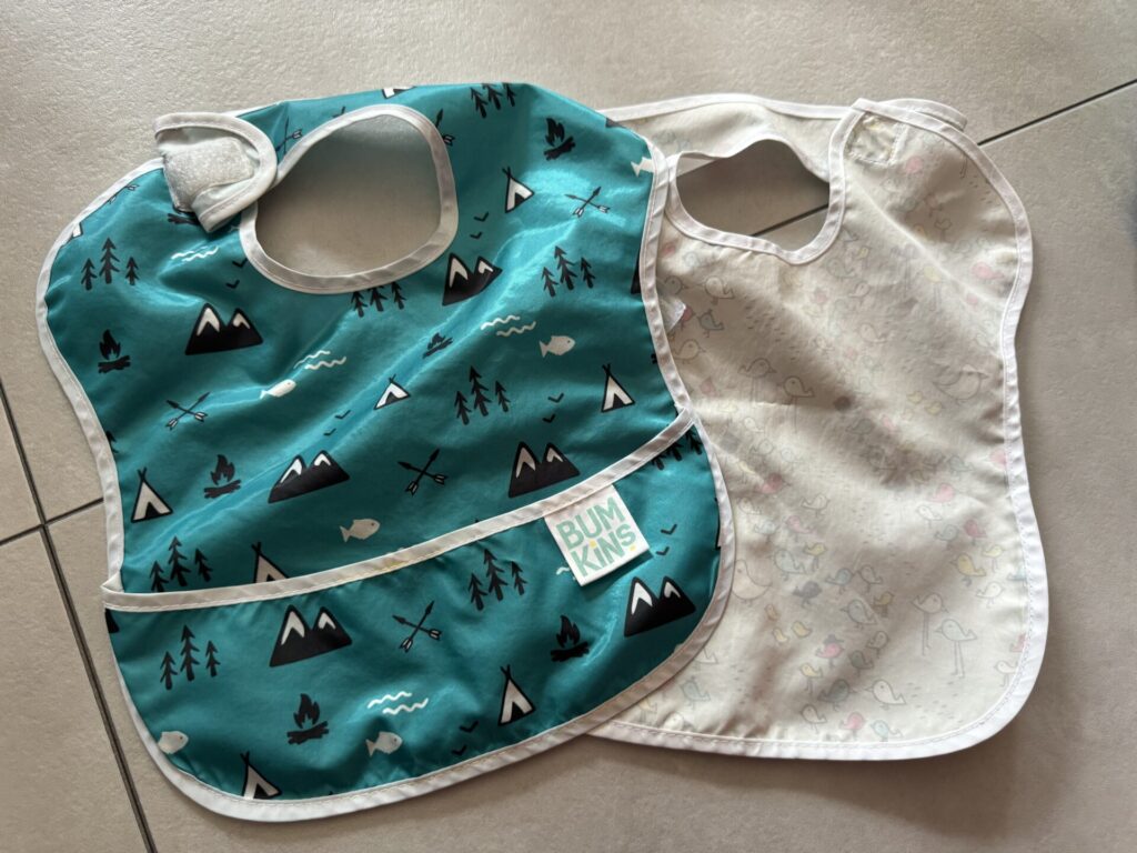 保育園で使っているお食事エプロンも我が家ではガンガン洗濯乾燥してしまっています。Bankinsを使用していますが、Bankinsは商品の個体差が大きく、防水部分が剥がれてしまって1年経つ頃にはもうこれ以上は無理かな〜というものと、全然いけるじゃんっていうものの2つに分かれます。